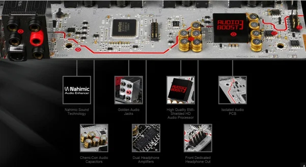 Also added to the motherboards multitude of features is MSI integrated enhanced high quality audio subsystem, this is centered around a Nahimic sound technology with Chemi-Con source audio capacitors and headphone amplifiers. This all adds up to a high quality sound output.