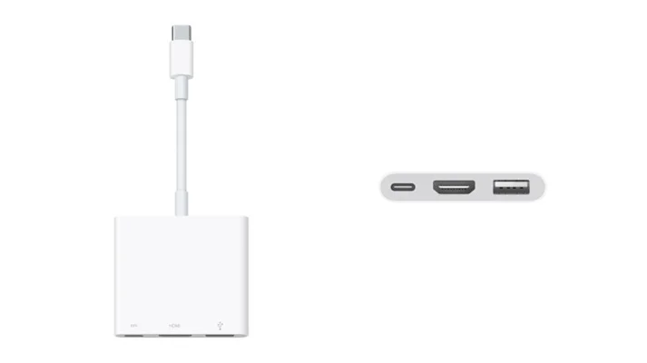 To substitute for its missing ports,you'll need a USB-C Digital AV Multiport Adapter which is sold separately at $79 price point and yes,you'll have to deal with a slew of cables coming out of that one single adapter. Which could be bothersome.