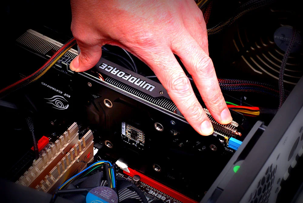 If you're upgrading to a new graphic card,carefully remove the graphic card. This will now lead to an exposed PCIe slot. Remove the graphic card from its packaging,again, before interacting with any hardware in particularly a graphic card,make sure you ground yourself.