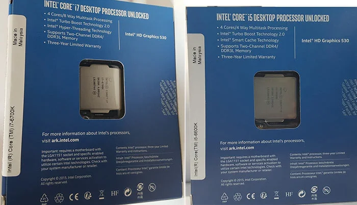 Its not common to find products to be leaked online right before it is unveil for public purchasing,especially if there's anticipated hype. The latest such online leak is retail packaging for the Intel Skylake Core i7-6700K and i5-600K processors. These processors are the next big release from Intel, and it is expected that they will be revealed at the Gamescon show in Cologne Germany which will start this coming Thursday through Sunday (August 6th-9th).