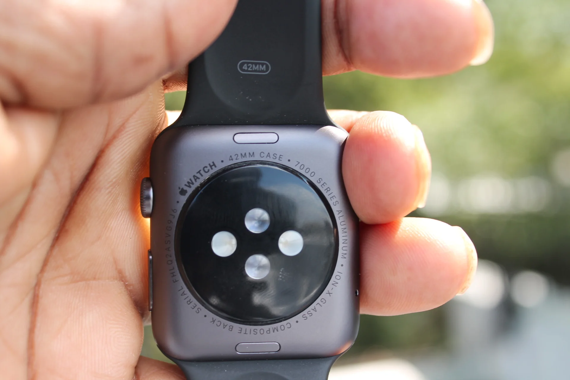 Flip the smartwatch over you'll find circular crystal that houses the heart rate LEDs and sensors,this piece of contraption also acts as a attachment point for the MagaSafe wireless charger which I will address later on. I actually thought that added attachment would make my wrist feel somewhat uncomfortable,but surprisingly it doesn't.