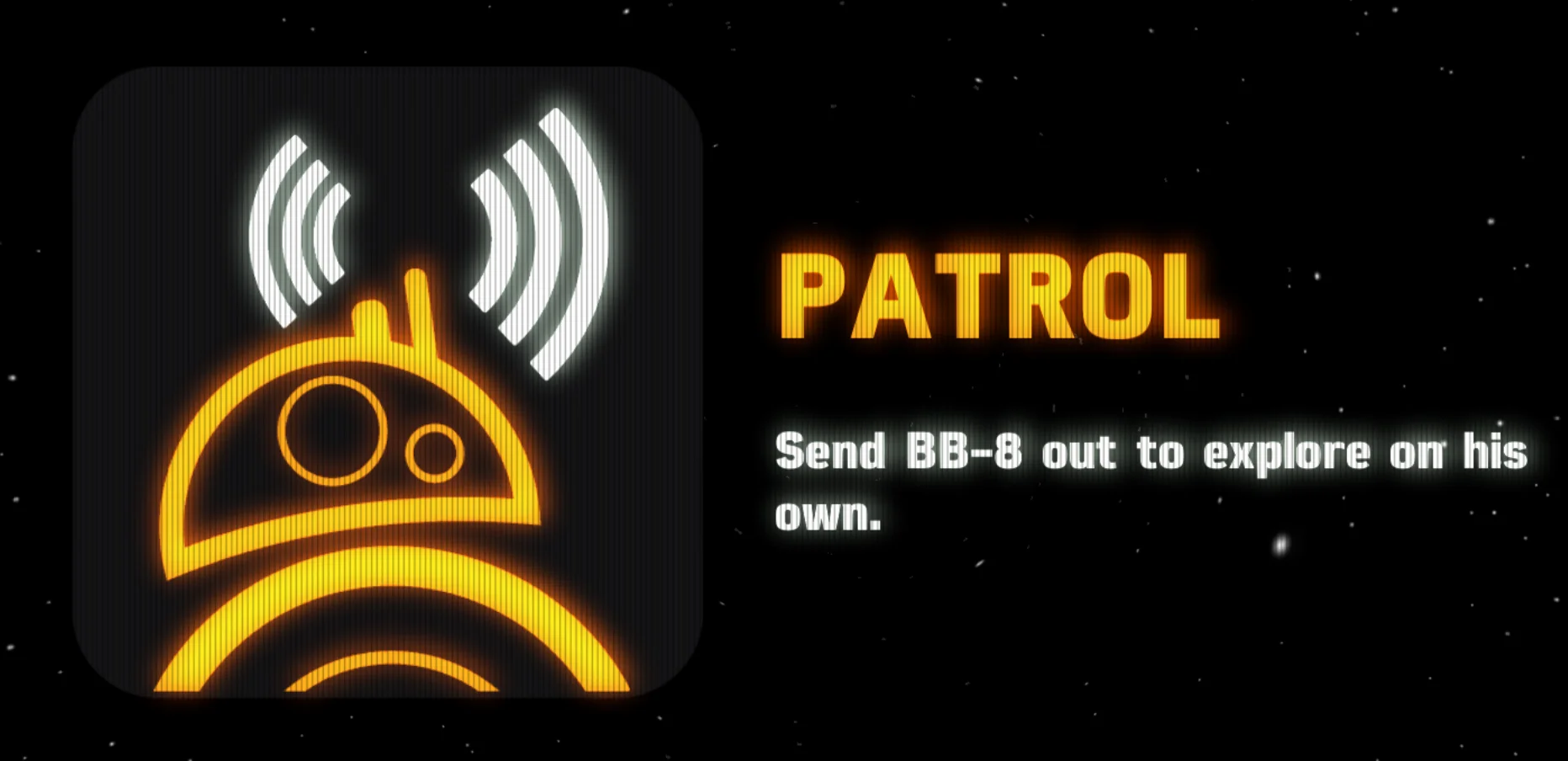 The Patrol is probably the best feature out of all the I've listed thus far. This allows the BB-8 Droid to actual explore premises of your home, office,where ever,I mean the little guy is actually trying to adapt to its environment. As the BB 8 Droid scours your environment, the app actually tracks the droid process,even tells you what obstacle is in its path and what objects it's impacted. It even detected my cat presence as a life form,pretty niffy to say the least. Now the droid is suppose to actually learn you environment to the point it won't bump into walls and chairs,and yes the cat,thus far the droid has not gained any knowledge of its environment. It still continues to knock over objects,get stuck under chairs and my desk.