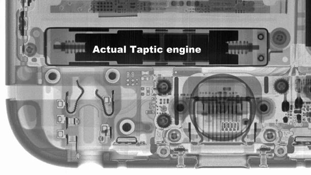 Not only did the folks at iFixit reveal the Taptic engine, they actually put the iPhone 6S under a X Ray machine and displayed the Taptic Engine in action, like I said,these guys are mad scientist literally giving you transparency.