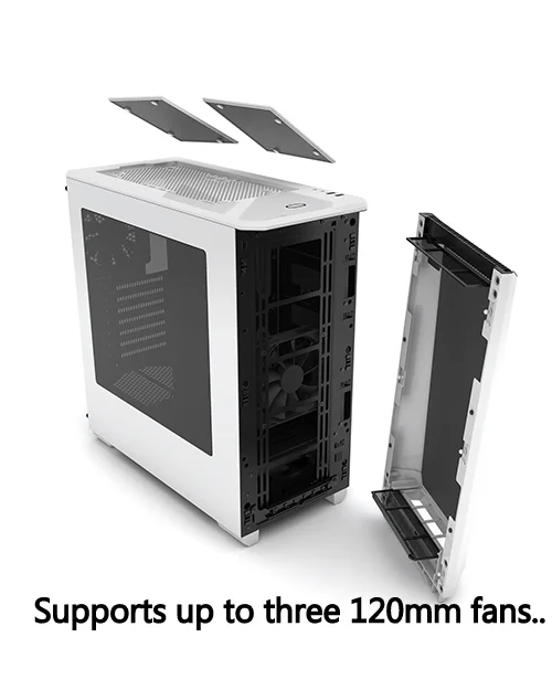 The cooling apparatus in the case features a 120mm and one rear exhaust fan. The front portion of the case can support up to three 120mm fans ( two 140mm fans), and the very top of the case has enough room for two 120mm or 140mm fans. Users will be able to fit 360mm and 280mm radiators in front of the case and a 120mm unit at the rear. There is no mention from Phanteks if users can place a radiator inside the PC case.