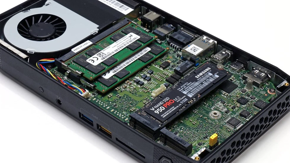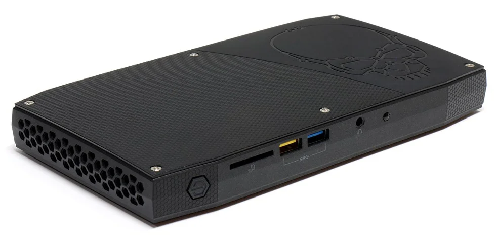 Is the Skull Canyon PC powerful enough to run some of your basic apps that's used on your desktop computers and embark in some gaming is probably the question you're asking as you read this post, well to answer that question is yes. Coming fully loaded with some pretty decent hardware, starting with Intel's own Skylake Core i7-6770HQ processor with a 2.6GHz base clock/ 3.5GHz boost clock. Now here's were it gets interesting in regards to its memory and storage, interesting because the Skull Canyon PC does not come with either of the two, making it technically a barebones system. But looking at its potential makes it very amazing to say the least. There is two 260-pin slots for DDR4 up 3200MHz SO-DIMM memory, you can max install 32GB of RAM. On the storage front, the Skull Canyon has 2 x M.2 SSD slots for the NVMe technology or it can also house any SATA SSD. As a bonus, you can add more storage as it has a SD card reader slot (SDXC card reader to be exact).