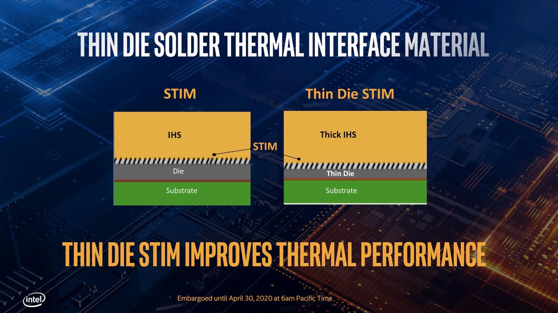 Aside from the added speed and cores, the interaction between the CPU die and integrated heat spreader (IHS) has changed. Intel has implemented a Thin Die STIM (solder thermal interface material) and thicker IHS, which according to Intel, will overall improve thermal performance. Though the processor has much improved thermal technology, if you plan on overclocking you will still need a decent aftermarket CPU cooler.