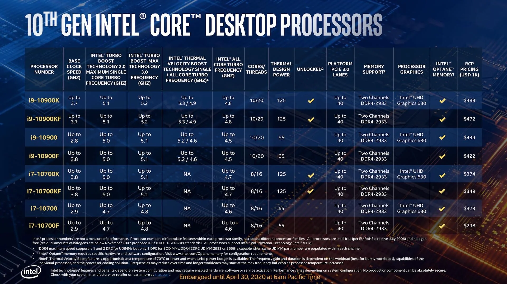 A few days ago, Intel announced the new lineup of their 10th generation Core "Comet Lake " desktop processor. The new processor puts greater emphasis on core speed, more processing cores, and added threads. While at the same time, offering low prices in comparison to previous-gen CPUs.