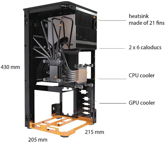 According to the case specs, it passively can cool up to a 100W CPU, or 120W if users chose active cooling. On the GPU front, the PC case can also cool up to 270mm length graphics card, 120W passively, or 180W actively cooled GPU.