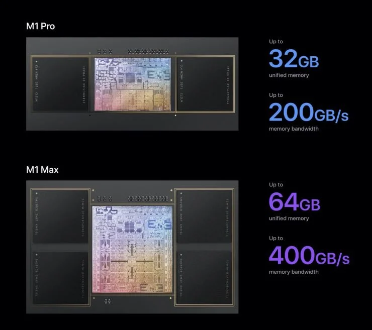 The M1 Pro is configurable up to 10-core CPU and 14 core GPU, and M1 Pro has a 10-core CPU and 16-core GPU. You can also configure an M1 Max with a 10-core CPU and 24-core GPU or an M1 max 10-core CPU and 32-core GPU.