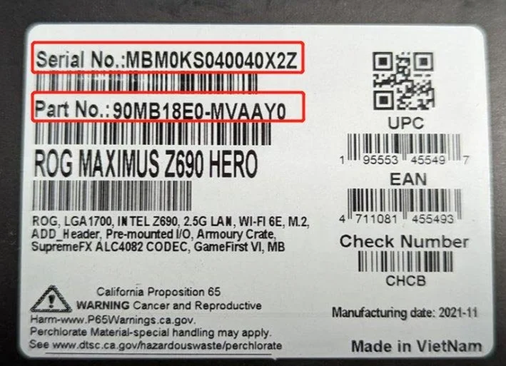 This issue has potentially affected all Asus ROG Maximus Z690 Hero motherboards with the following part number, 90MV18E0-MVAAY, and serial number starting with MA, MB. All the units were manufactured in 2021 with a label pasted on the box. If you're one of many who have these defective motherboards, Asus is offering a replacement. Follow the list below.