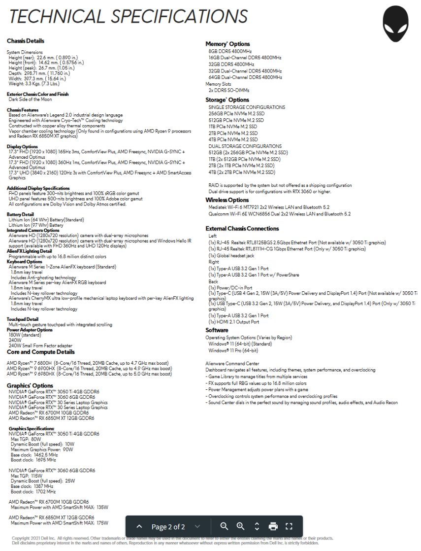 The entire chassis comprises a brand new Legend 2.0 industrial design that uses copper alloy thermal components. In addition, a vapor chamber explicitly made to cool Ryzen 9 and Radeon RX 6850M XT configurations. Finally, the color scheme uniquely has a Darkside of the Moon finish. There's already listed on the Alienware m17 R5, starting at $1599 US.
