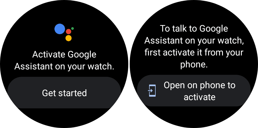 Now it's time to activate Google Assistant. 1. open the Assistant app on the Galaxy Watch 4 ( If you already left the Play Store app, swipe up from the bottom and tap the Assistant icon from the list of installed apps). Tap the Get Started button. Open your Galaxy smartphone to activate the button. Then unlock your paired phone, and tap the Activate button. Tap Next in the bottom right corner. You now have Google Assistant on your Galaxy Watch 4.