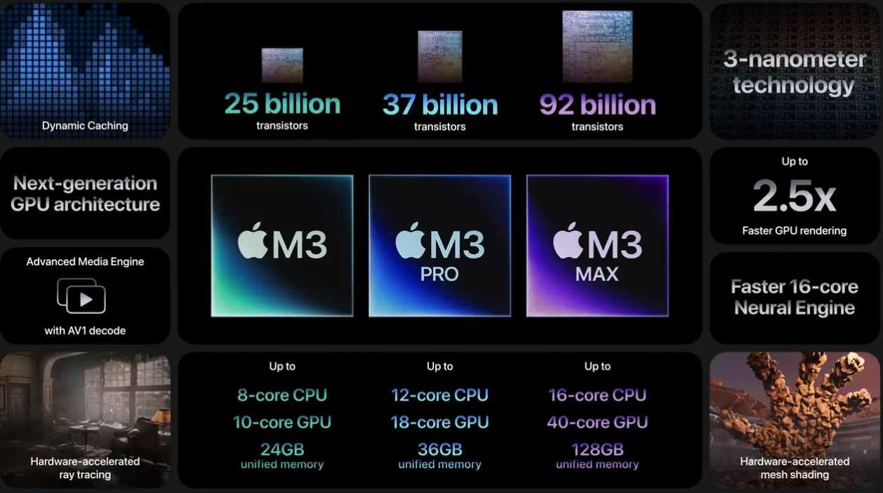 Let's have an in-depth look at each M3 chip.