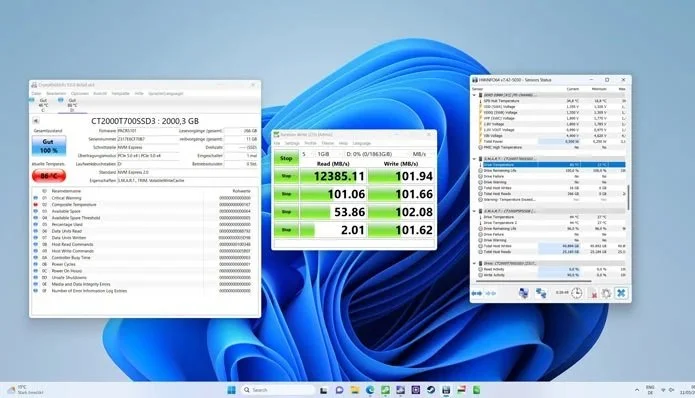 You can always expect flagship M.2 NVMe Gen 5 SSDs, with fast read/write speeds, to run hot, especially SSDs based on the Phison E26 series controller. If cooling fans are removed, thermal issues can arise with Crucial's T700 drives, affecting overall performance. According to a social media post by ComputerBase, the German tech website tested the Crucial T700. The results were unimpressive. The test shows transfer speeds can throttle down comparable to a spinning HDD.