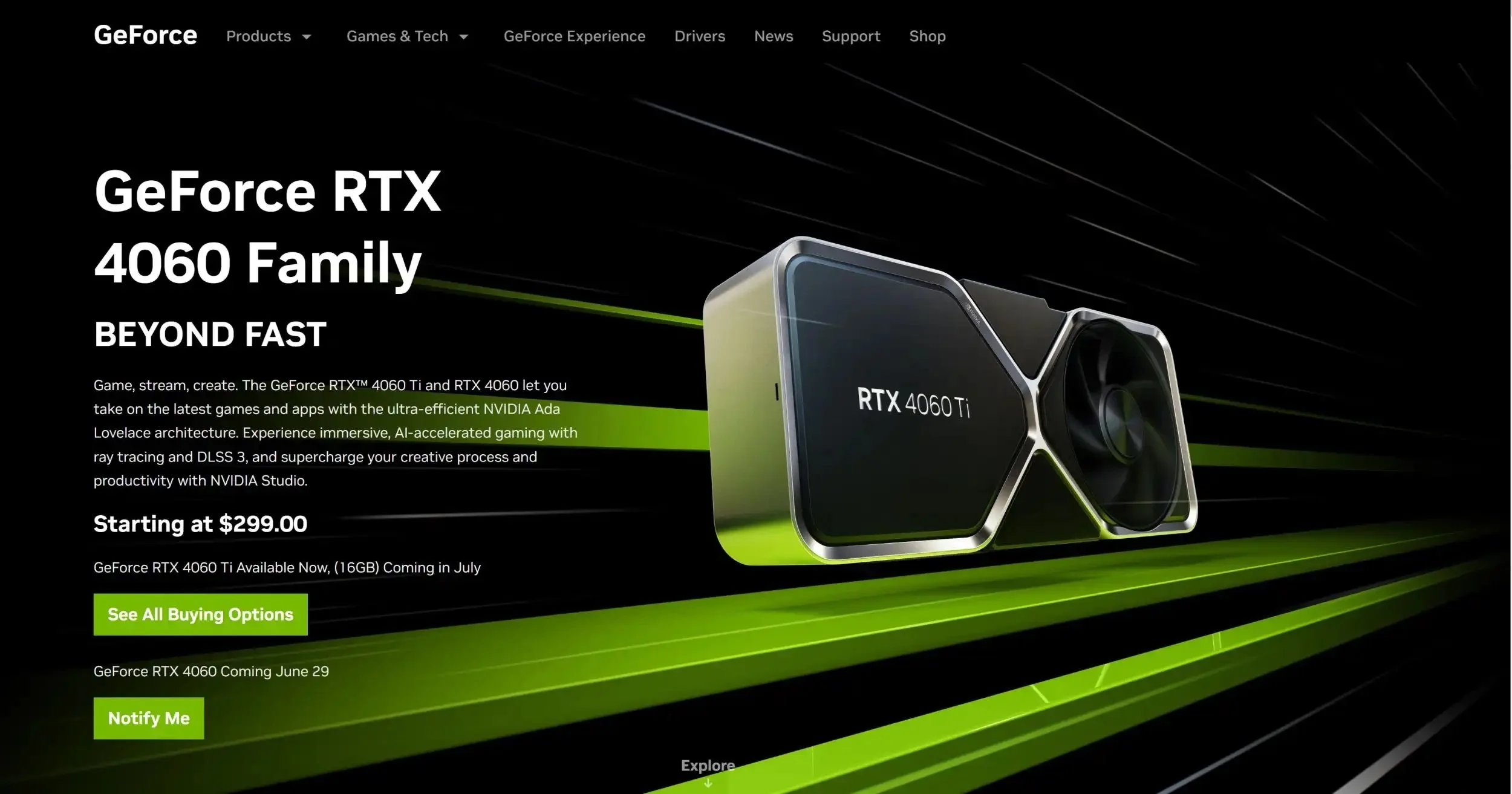 Quietly Nivida updated its RTX 4060 series webpage, displaying the new release date. Evidence of changed dates can be viewed on several web publications. It's worth noting the GeForce RTX 4060 TI was revealed at the same time as the 4060, but there are no changes to the launch date, which is July.