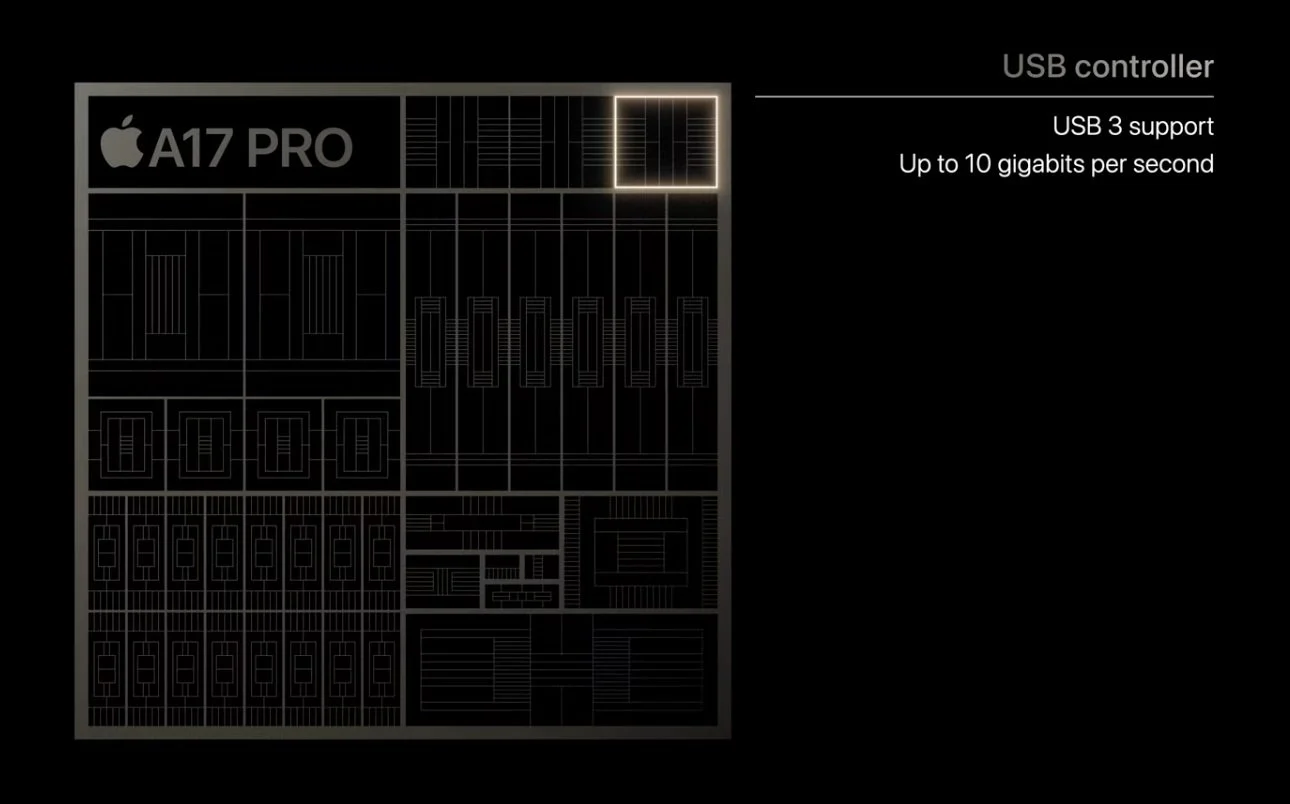 The iPhone 15 now supports USB-C (USB 3). You can attribute that to the new A 17 Pro processor. With the latest processor, the iPhone 15 can directly transfer massive data, with speeds up to 10GB/s.