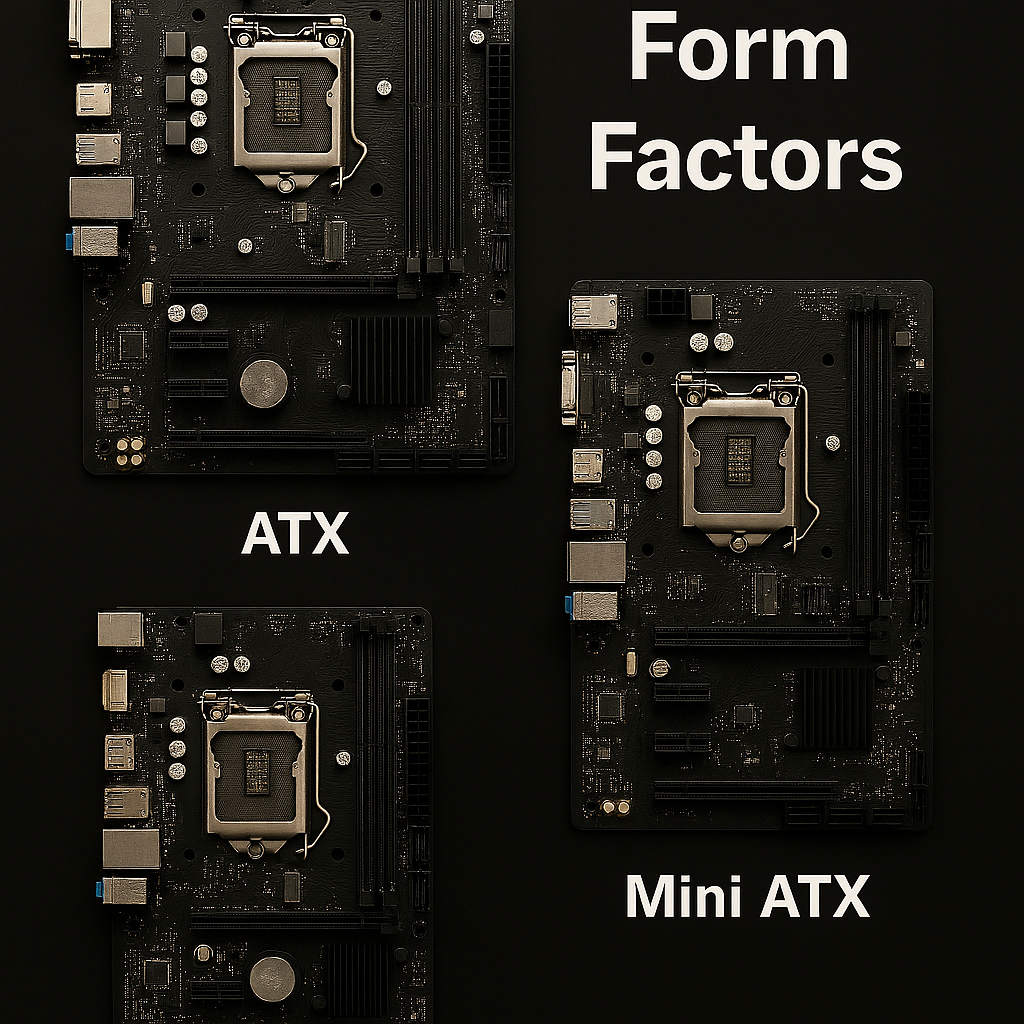 The standard sizes of motherboards include ATX motherboards, which measure 12 x 9.6 inches, the most common layout for desktop PCs, offering ample room for expansion slots, RAM, and cooling solutions. The Micro-ATX is a smaller motherboard, ideal for budget builds, compact gaming systems, or for those who don't require extensive expansion. Finally, there is the Mini-ITX motherboard. These ultra-compact boards measure just 6.7 x 6.7 inches, making them ideal for small form factor builds, such as HTPCs, portable gaming rigs, or minimalist desktops.