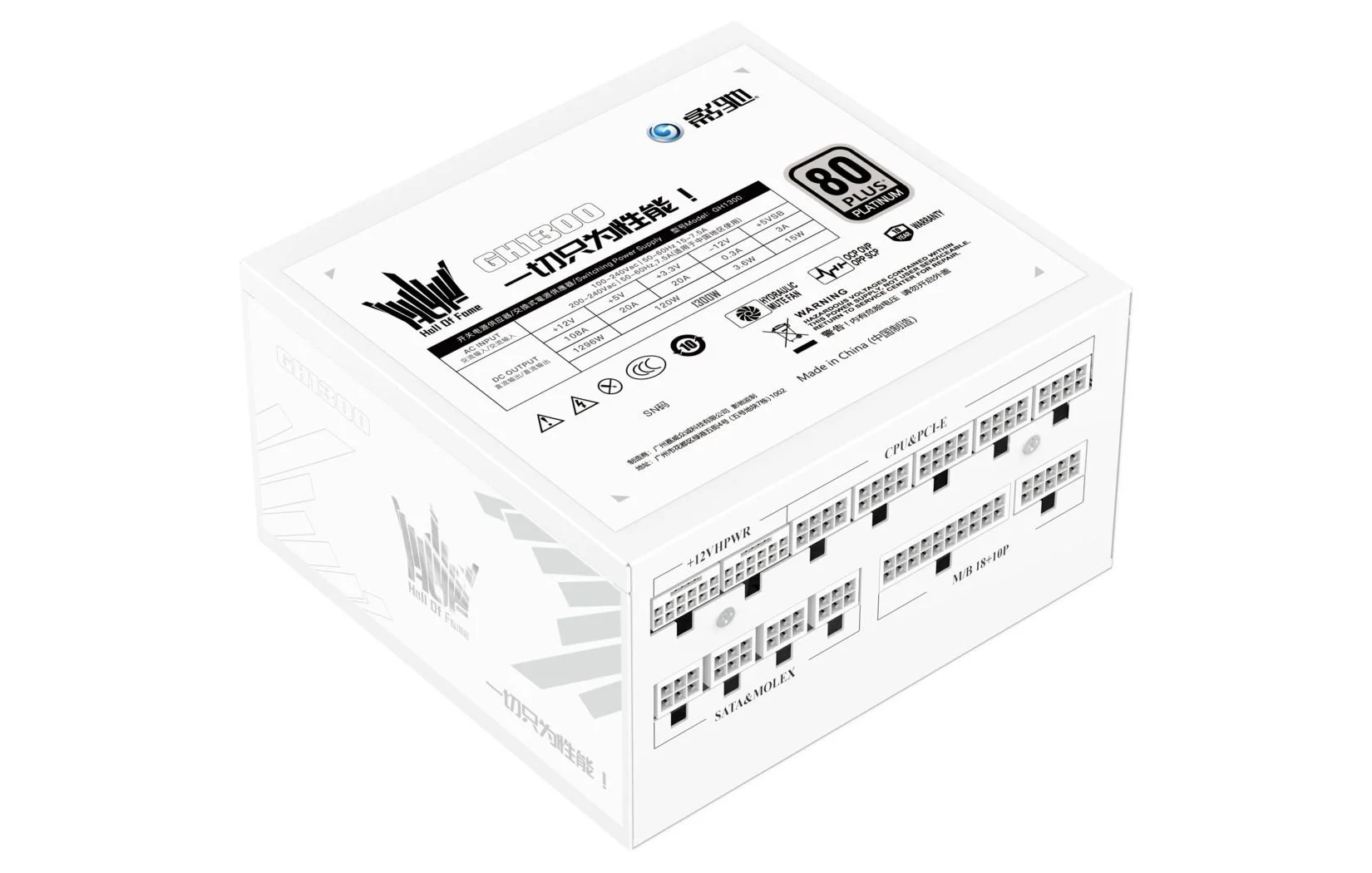 The Galax HOF GH130 is rated for 1300W of nominal power, capable of peaking up to 2600W. A top-tier unit set to compete with MSI Ai1300P rated for 1300W. In addition, Galax PSU is certified for 80Plus Platinum, which the company confirms to be 92% efficient at half the load.