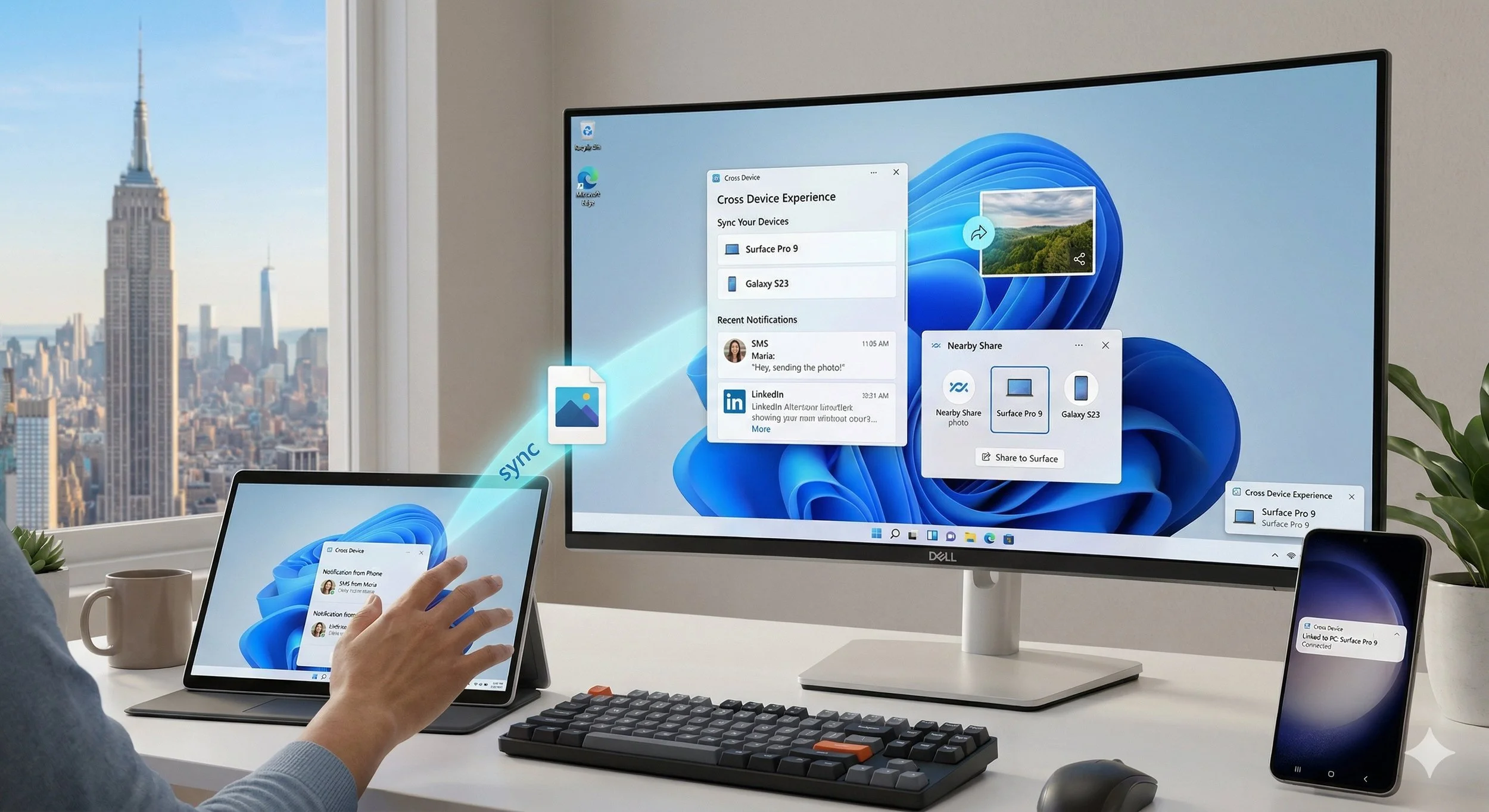 Users can still enjoy the Cross Device feature on Android smartphones, and you'll be able to resume using apps (like Word, Spotify, or a browser session) directly from the Windows taskbar. The On-Device AI will have more features, including moving local processing (using your NPU) for privacy, "Recall" (searchable PC history), and real-time translation for live captions.